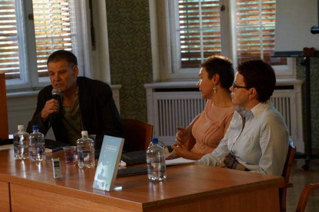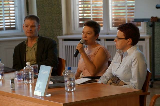 fragmenty wystąpień uczestników spotkania: Ewy Wiatr, autorki książki Moniki Polit oraz Pawła Spodenkiewicza