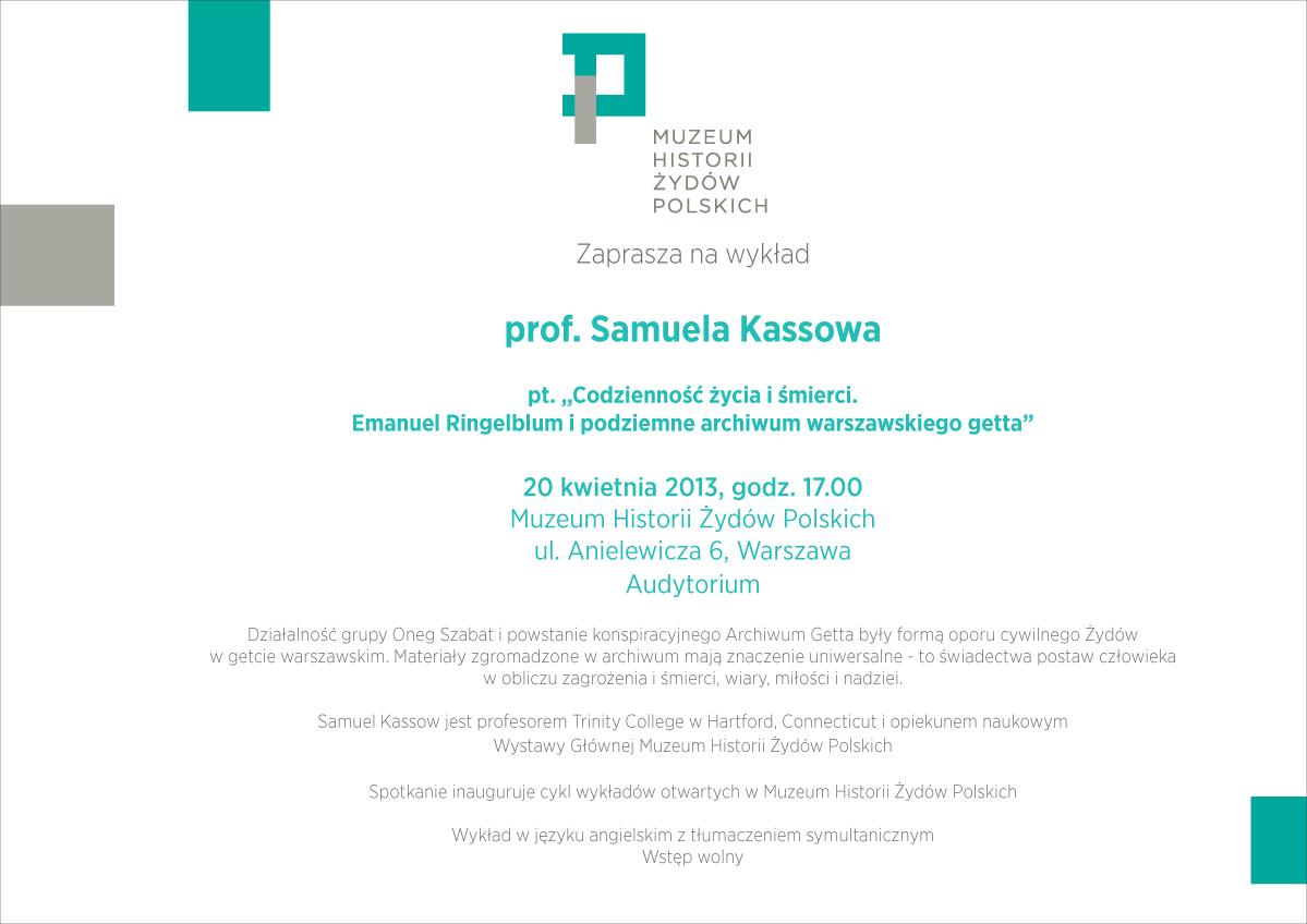 POLECAMY PAŃSTWA UWADZE organizowany przez Muzeum Historii Żydów Polskich 20 kwietnia br wykład prof. Samuela Kassowa pt. „Codzienność życia i śmierci. Emanuel Ringelblum i podziemne archiwum warszawskiego getta”.